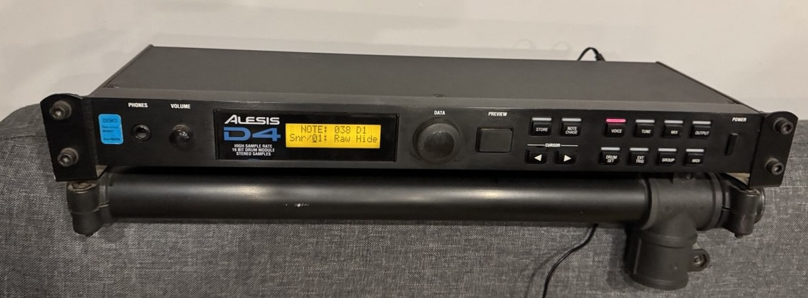 El D4 es un módulo de sonido de batería y percusión totalmente profesional de los años 90. Cuenta con 500 sonidos de batería, muestreados a 48 kHz y almacenados en un chip ROM interno. Los sonidos cubren toda la gama, desde grandes tipos de batería acústica hasta sonidos de batería electrónica. También hay disponibles sonidos de percusión étnica y orquestal y varios efectos de percusión. También hay 21 kits de batería programables. Y el D4 tiene una implementación MIDI completa de 16 canales.