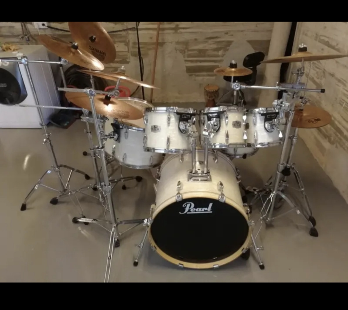 Bateria Pearl Export Series EXR con toms de 8", 10", 12", goliats de 14",16", caja 14", bombo 22". Platos