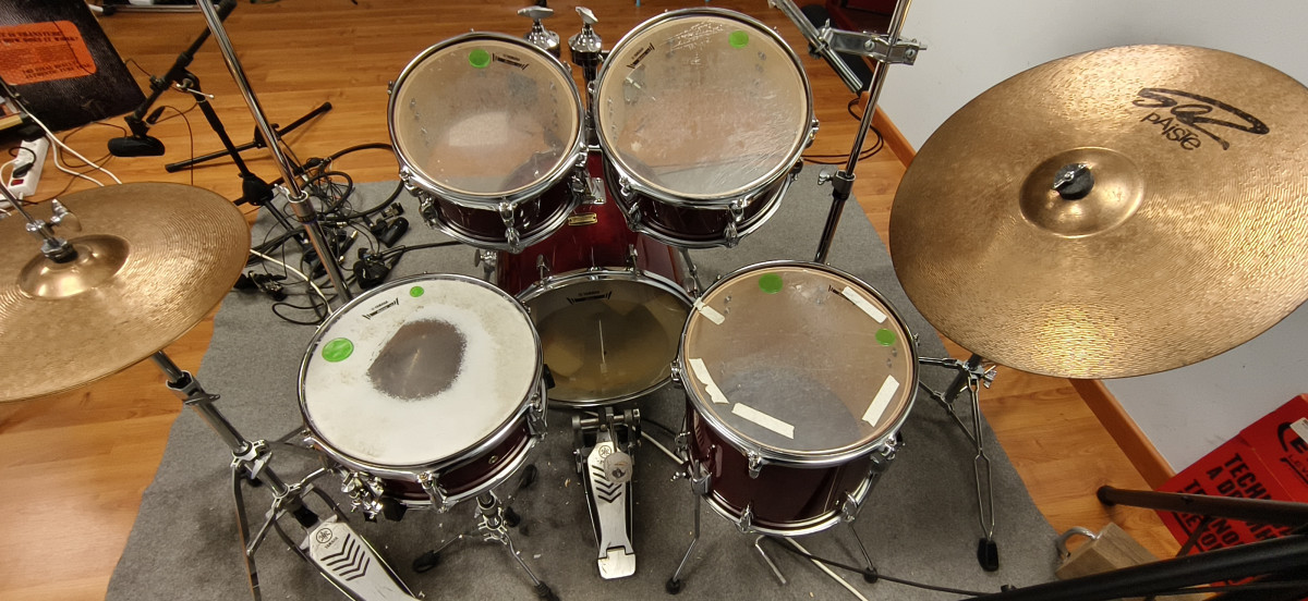 - Platos Paiste 502 (Hit-hat, Crash, Ride) + un crash y un splash