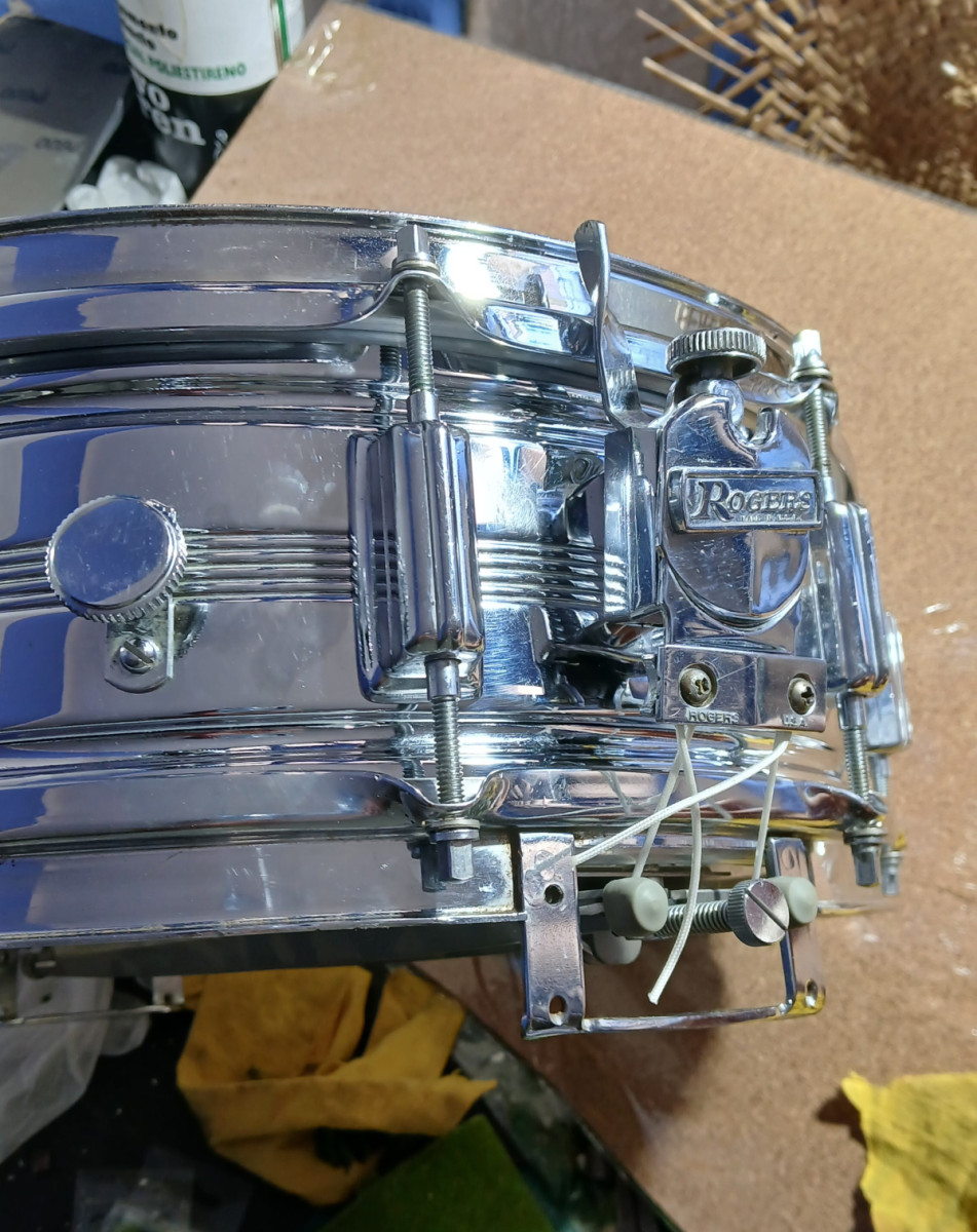 Caixa/Tabal Rogers Dynasonic (crec d'entre el 70 i el 73, és força complicat saber-ho amb precisió) Molt bon estat. Pells sols tocades per enregistrar vídeos de les meves lliçons. Alguna picadeta i una mica de rovell a les rutlles. Tots els mecanismes funcionen perfecte. No accepto canvis, la caixa està a Barcelona. Es pot enviar, i també entregar en mà prop de Barcelona, 66 inclòs.