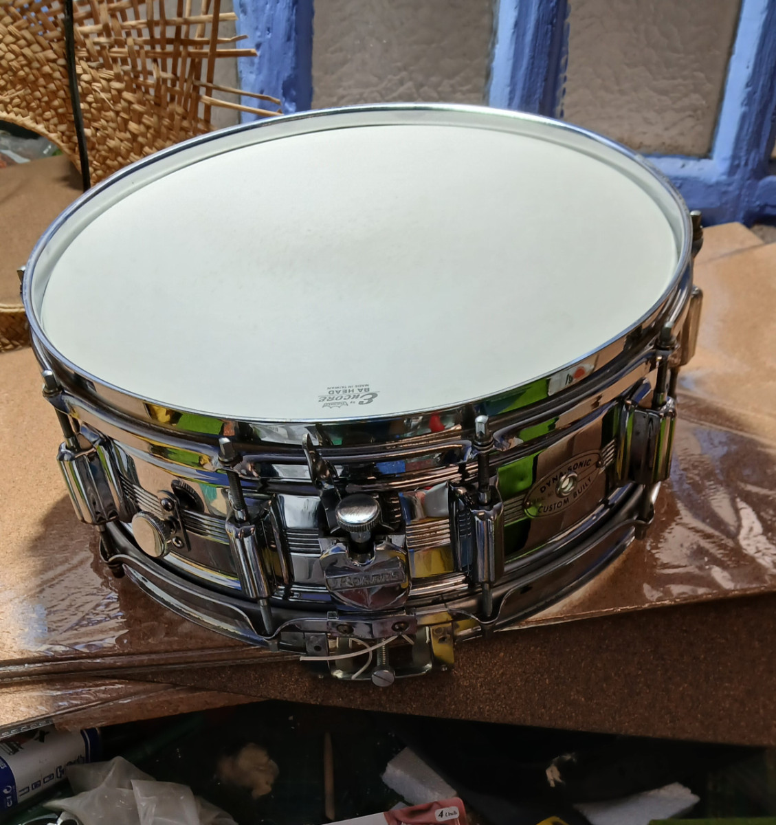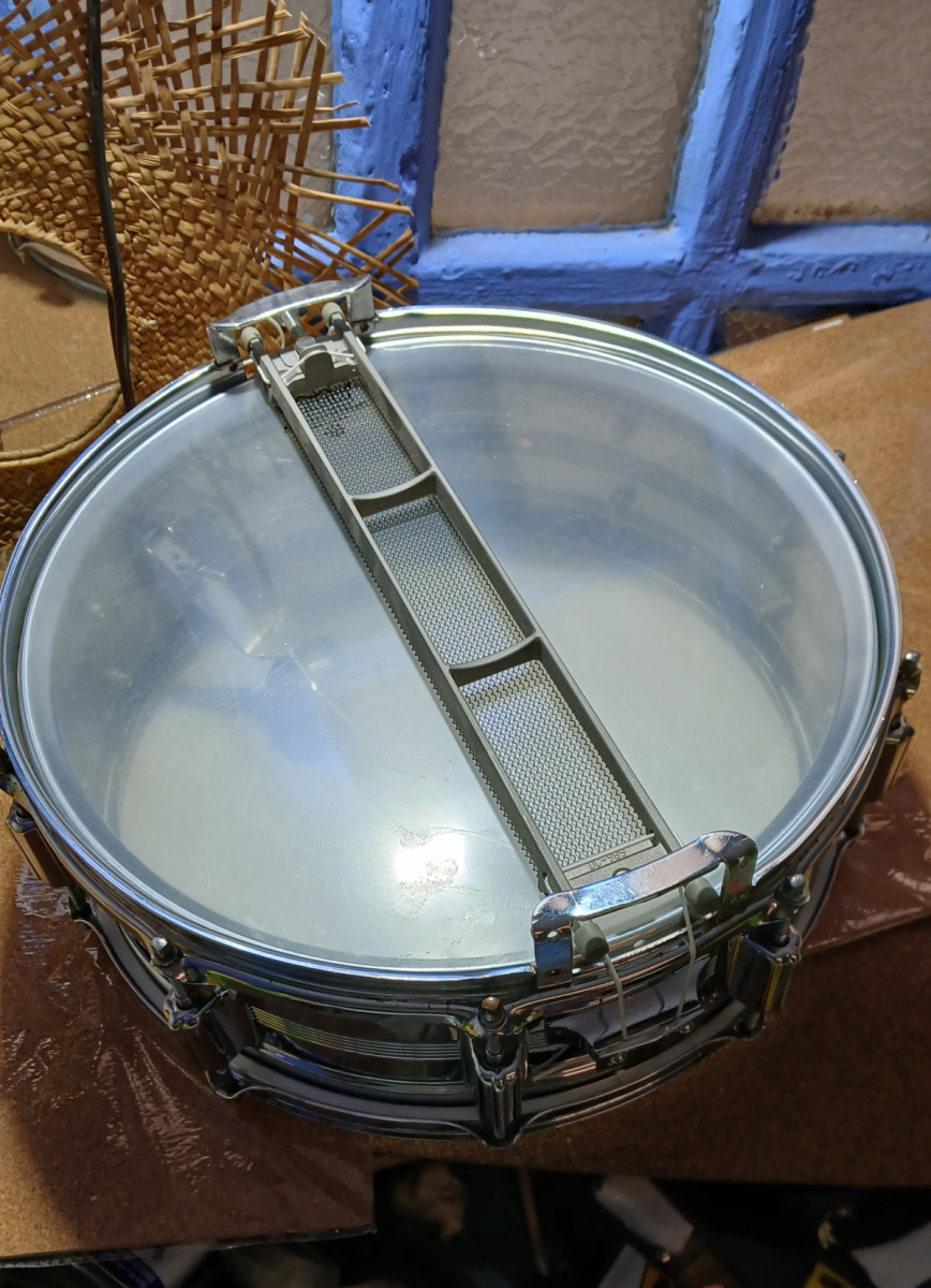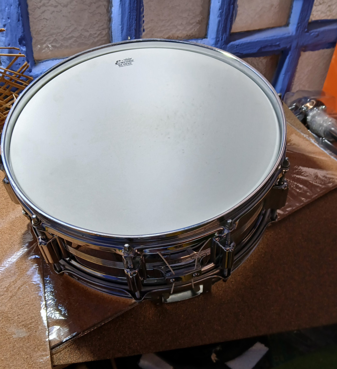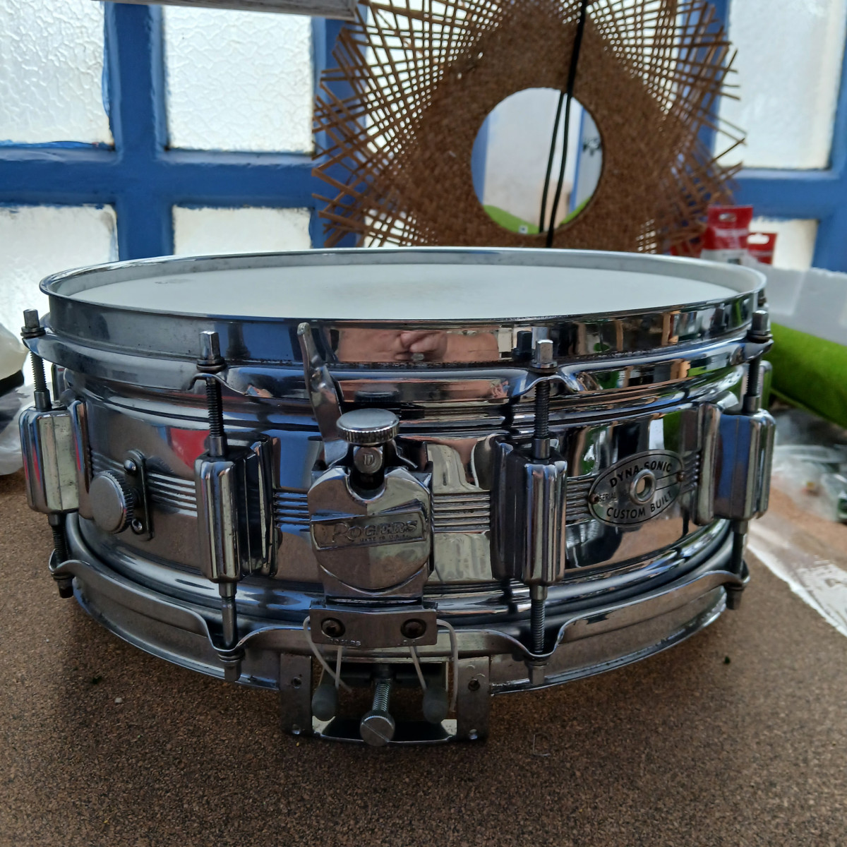 Caixa/Tabal Rogers Dynasonic (crec d'entre el 70 i el 73, és força complicat saber-ho amb precisió) Molt bon estat. Pells sols tocades per enregistrar vídeos de les meves lliçons. Alguna picadeta i una mica de rovell a les rutlles. Tots els mecanismes funcionen perfecte (repassat a BCNDrums). No accepto canvis, la caixa està a Barcelona. Es pot enviar, i també entregar en mà prop de Barcelona, 66 inclòs.