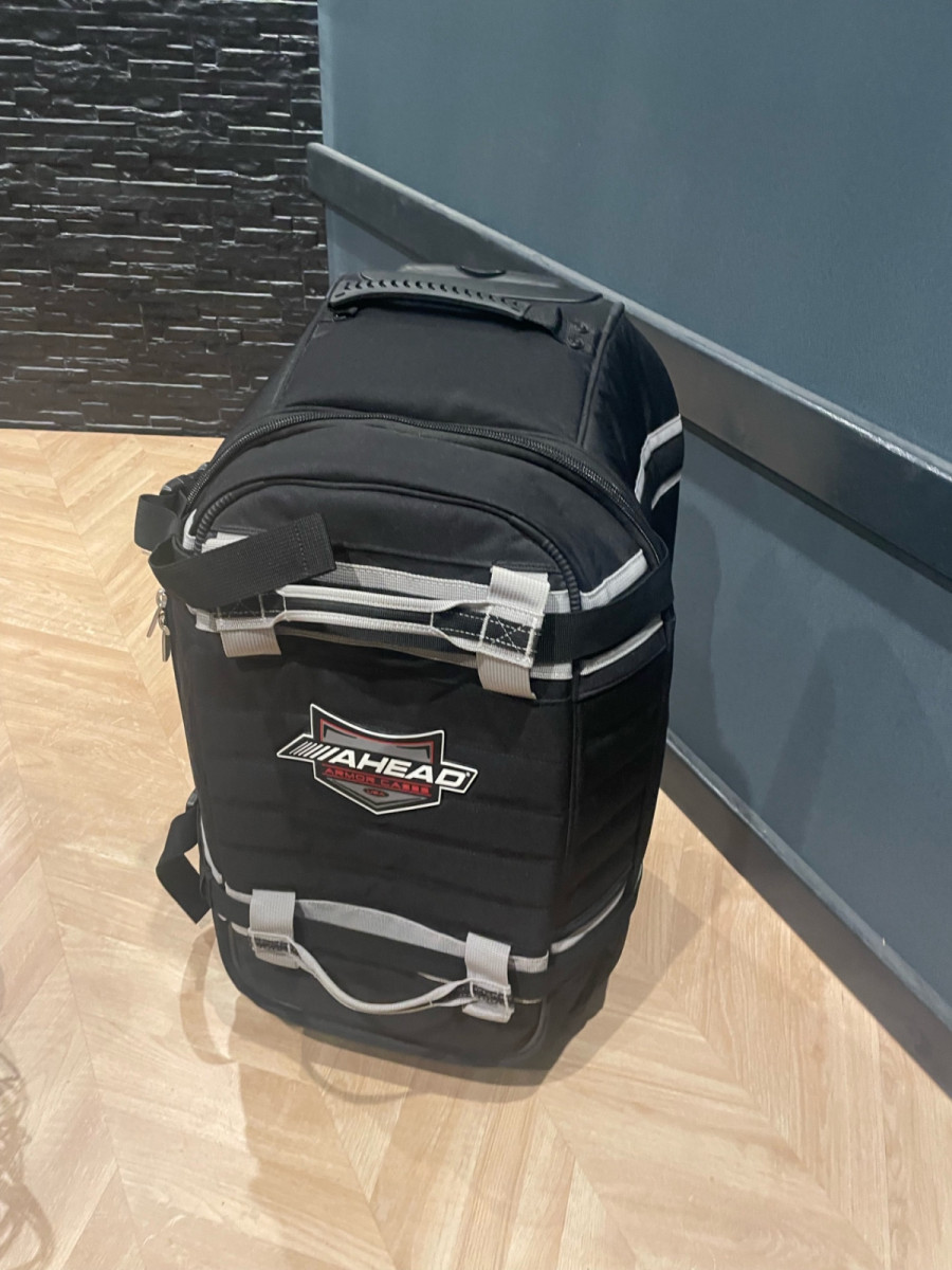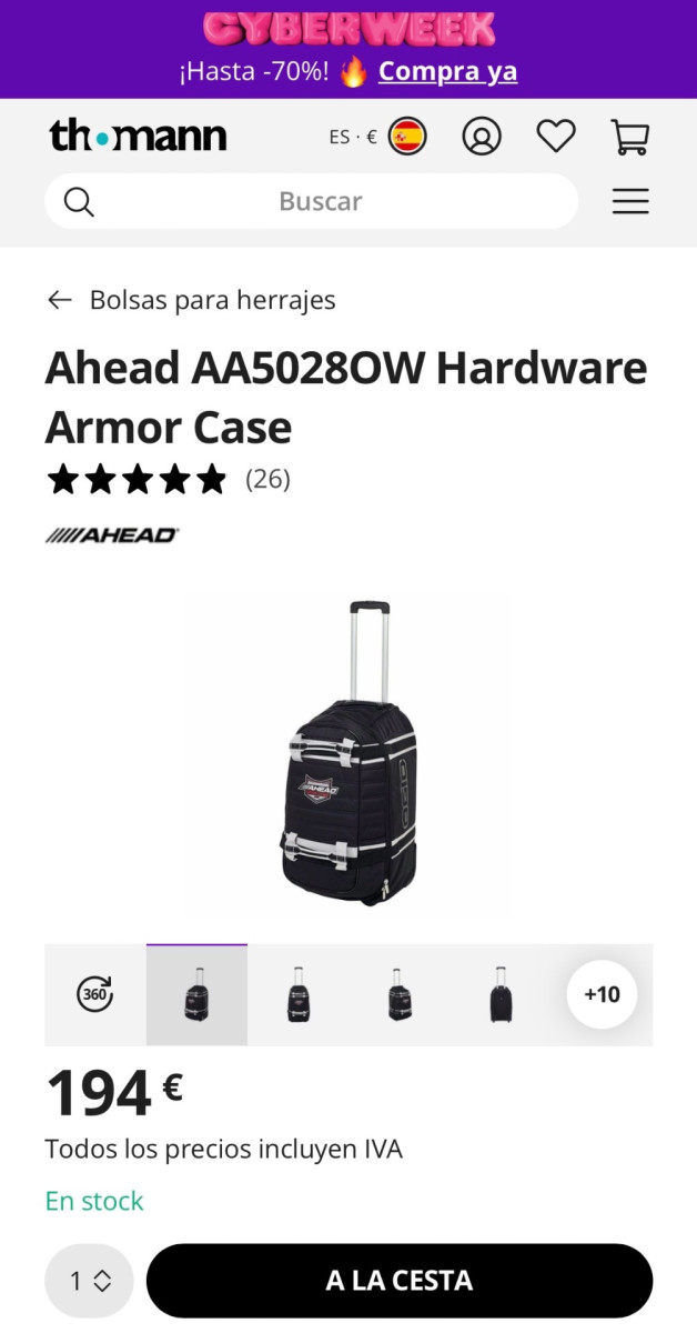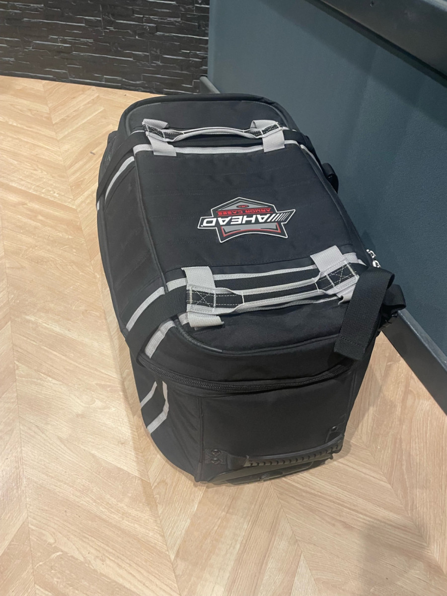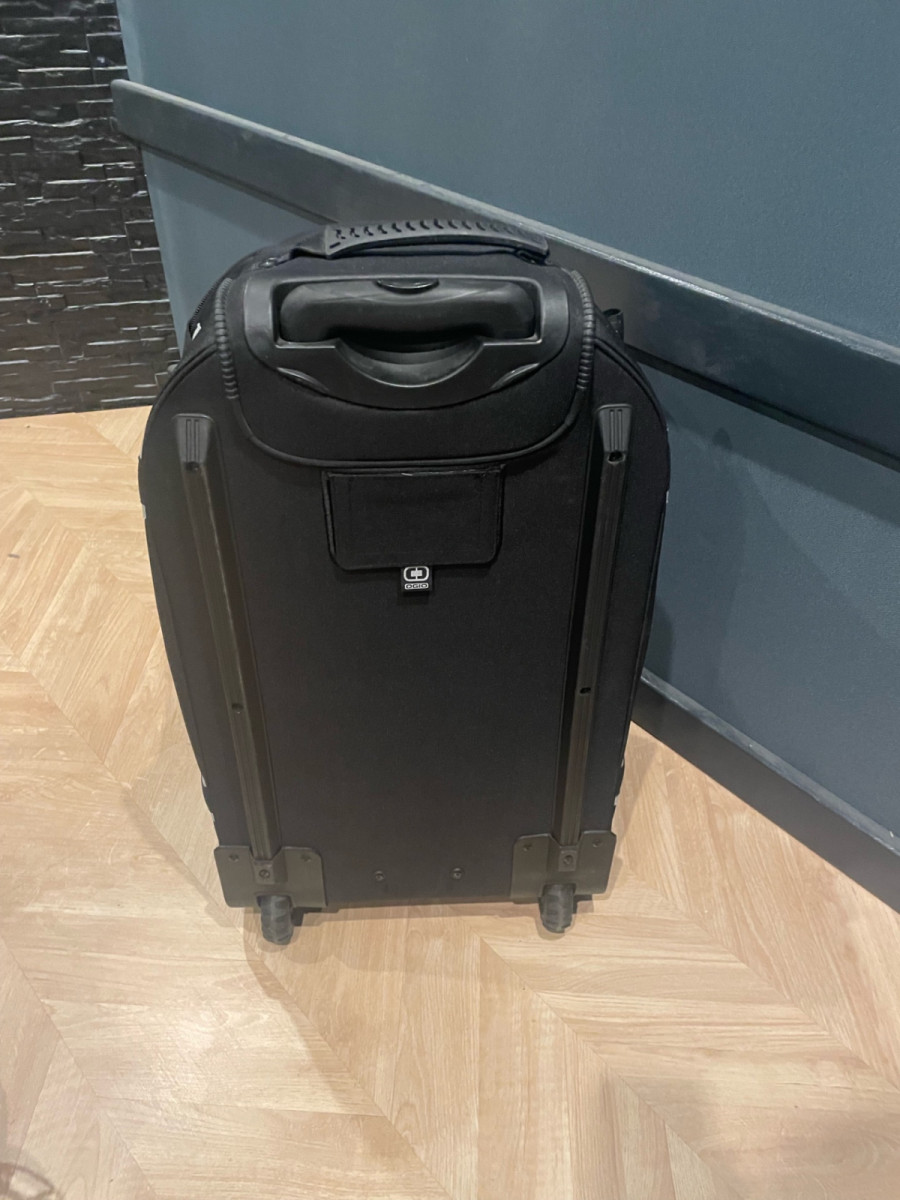 Prácticamente sin usar. 71*35*35cm. Con ruedas y mango extensible. Uno de los mejores en su categoría, resistente a la intemperie y con fondo reforzado