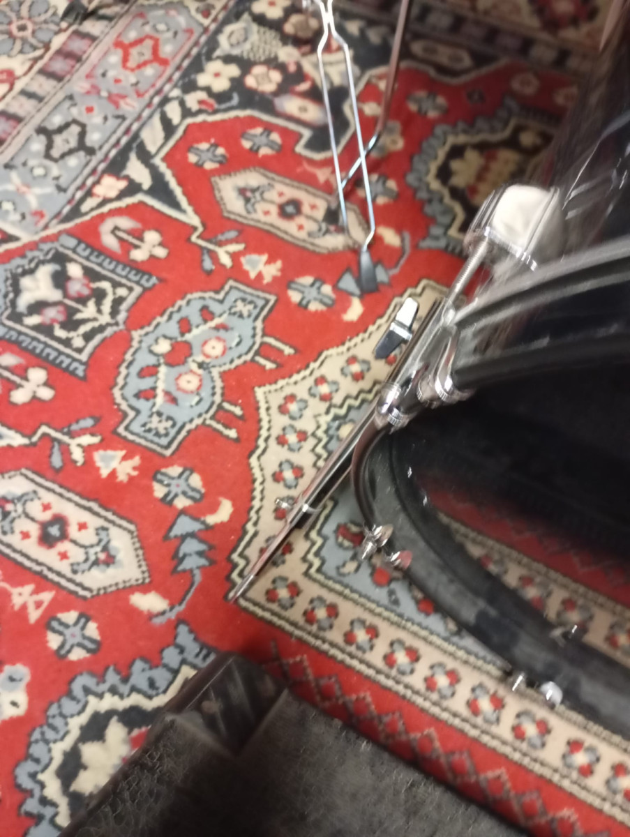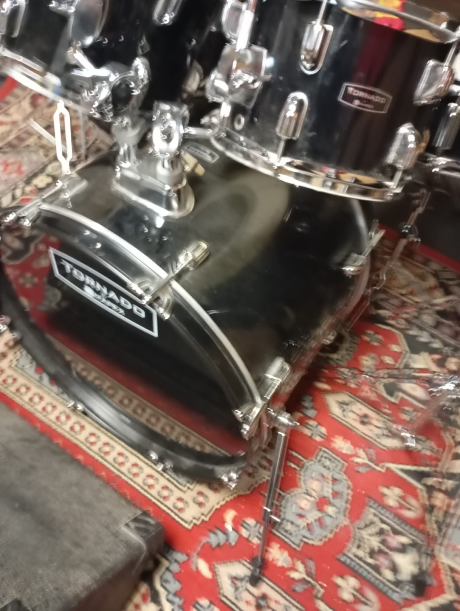 Tiene 2 años de uso y esta en buen estado, solo le falta la goma de apoyo de una de las patas del bombo (hay foto). Bien cuidada.