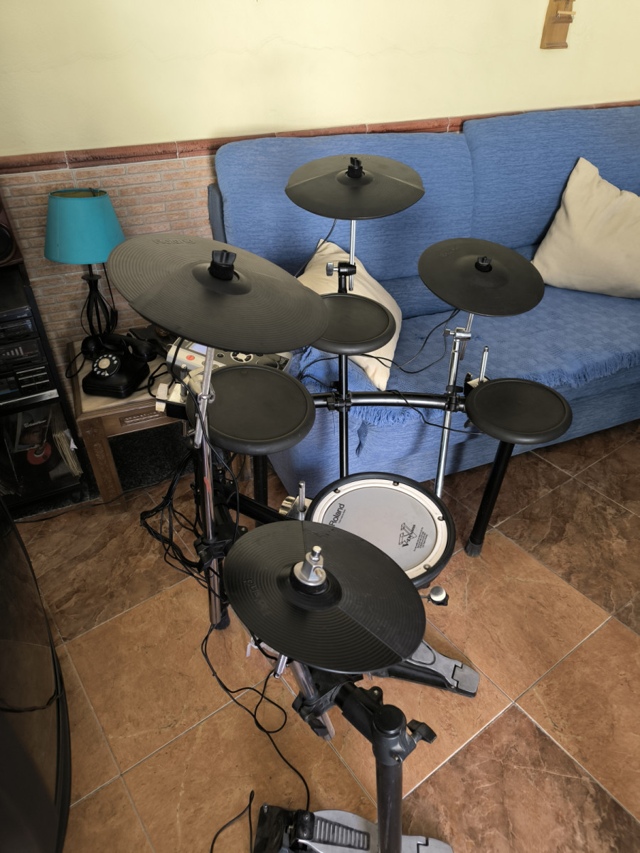 Batería electrónica Roland TD-9 en perfecto estado,usada muy poco, porque por motivos personales tuve que dejar de tocar. Inclye ride extra cuyo valor ya es de más de 100 euros, baquetas de aluminio, y de regalo un asiento Pearl valorado en 200 euros y unos cascos Sennheiser. También incluye el pedal para bombo y el cable MIDI para poder conectar la batería a cualquier odernador y usar programas como addictive drums, ezdrummers etc. Cómo se puede ver tiene todo para montar y empezar a tocar. Se puede probar sin problema. No se vende por separado!!! Precio no negociable!!!!