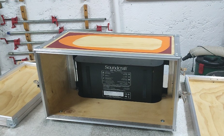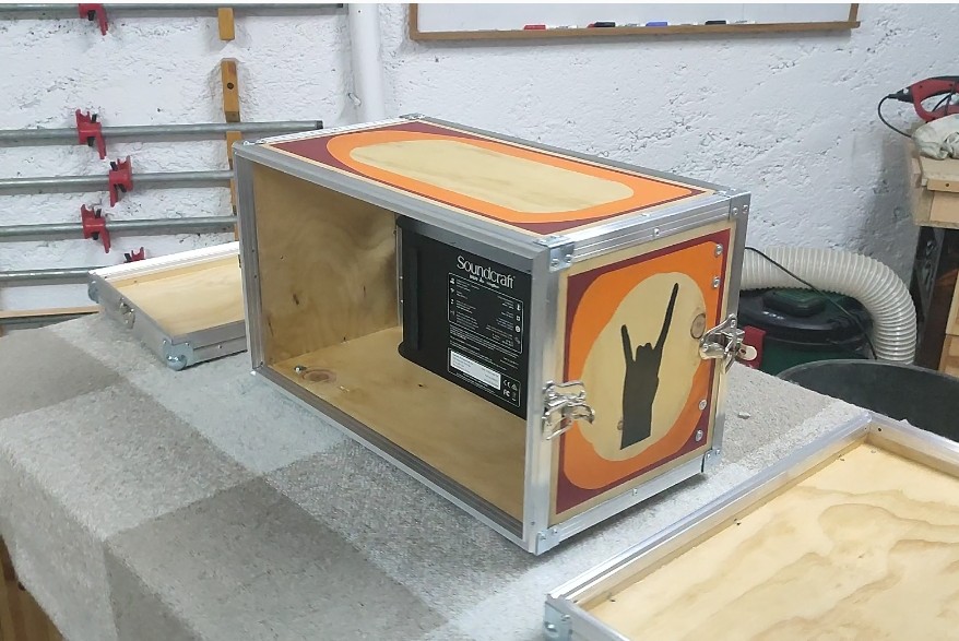 Flightcase o maleta de transporte para equipo de rack de 6 unidades.