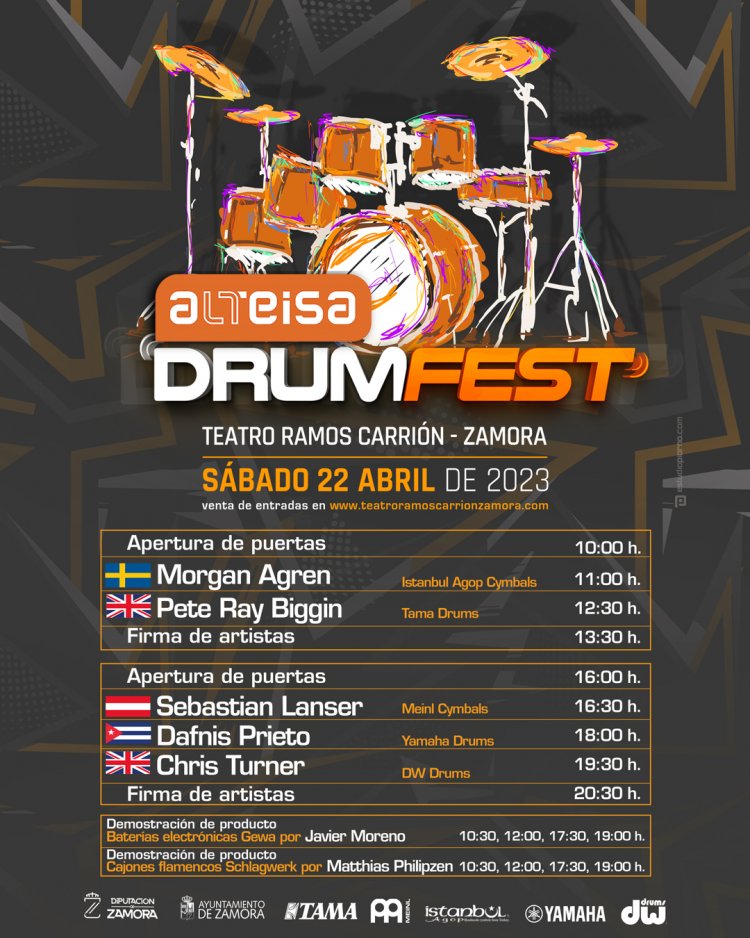 Para muchos amantes de la batería de nuestro país, Alteisa DrumFest es un nombre ya consolidado. Este festival de batería promovido por la tienda de instrumentos Alteisa que se celebra año tras año en el Teatro Ramos Carrión en Zamora presenta el cartel de la edición de este año, que se celebrará el día 22 de Abril de 2023.