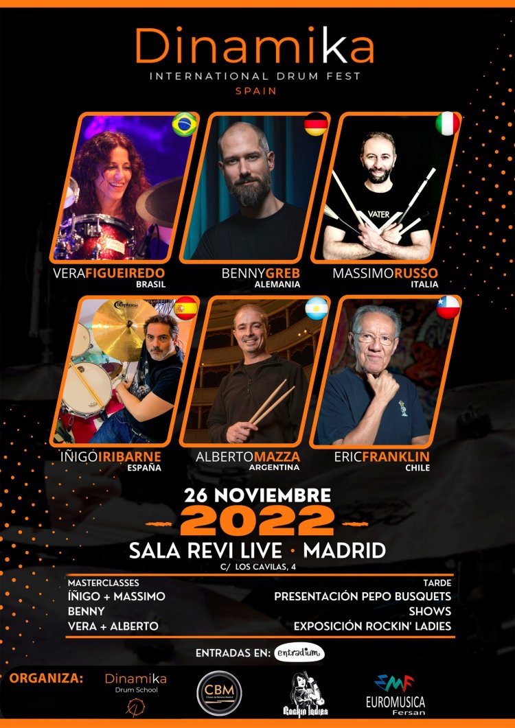 Dentro de la programación del Dinamika, que recordamos que está promovido por la escuela de batería Dinamika, situada en Arezzo, Italia, encontraremos las masterclasses y shows de Benny Greb, Íñigo Iribarne (colaborador de batacas y docente de 10 de quien podéis ver ejercicios muy divertidos dentro de El Bataconcepto), Massimo Russo, Vera Figueiredo y, por supuesto, Alberto Mazza, además del concierto de La Jam de los Franklin conducida por el baterista chileno Eric Franklin.