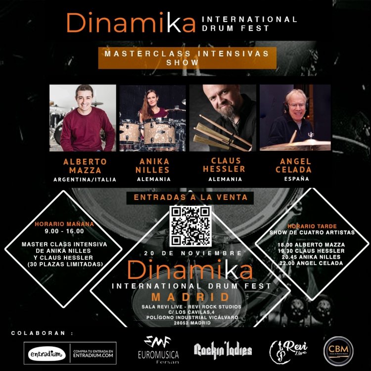 Este evento está organizado por Dinamika Drum School y colaboran: Euromúsica Fersan, Clases de Batería Madrid, Estudios Revirock y Rockin ́Ladies.
