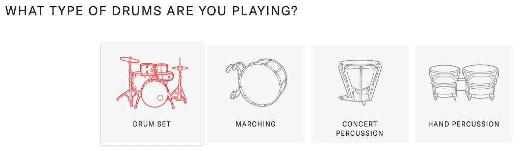 ¿Cómo funciona? Es sencillo. Solo necesitas responder algunas preguntas sobre tu tipo de tambor, tus preferencias de género musical y tu estilo de tocar, y los avanzados análisis de Drumhead Finder se encargarán del resto. Una de las opciones que aparecen es por qué cambias tu parche y te da opciones como cambiar desde otra marca o hacer un regalo a alguien, que pueden ser muy útiles Si estás empezando en el mundo de la percusión o eres un baterista experimentado que busca probar algo nuevo, esta herramienta te ayudará a descubrir el parche perfecto para ti. En las siguientes imágenes podéis ver las preguntas que la herramienta hace y qué parche me recomienda.