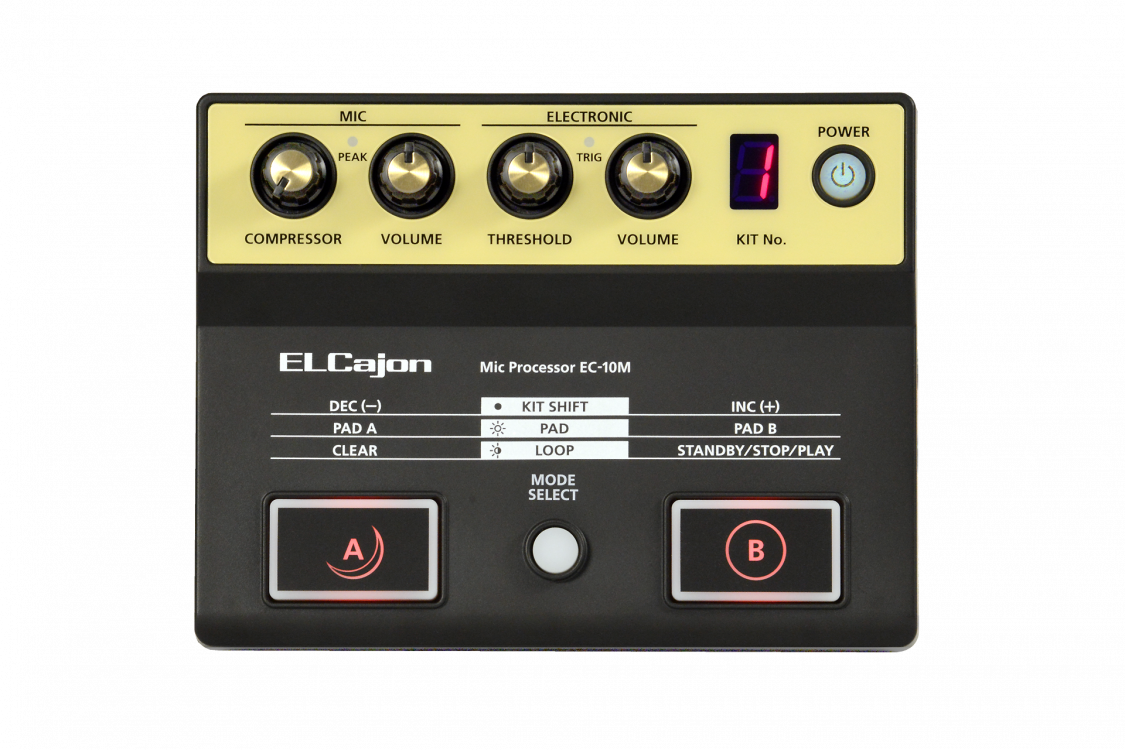 El EC-10M diferencia entre los golpes de la tapa y el borde del cajón, permitiendo disparar sonidos diferentes en cada zona. Además, utilizando los pedales A/B integrados se pueden disparar otros sonidos adicionales con el pie —también se pueden usar pedales de bombo Roland—.