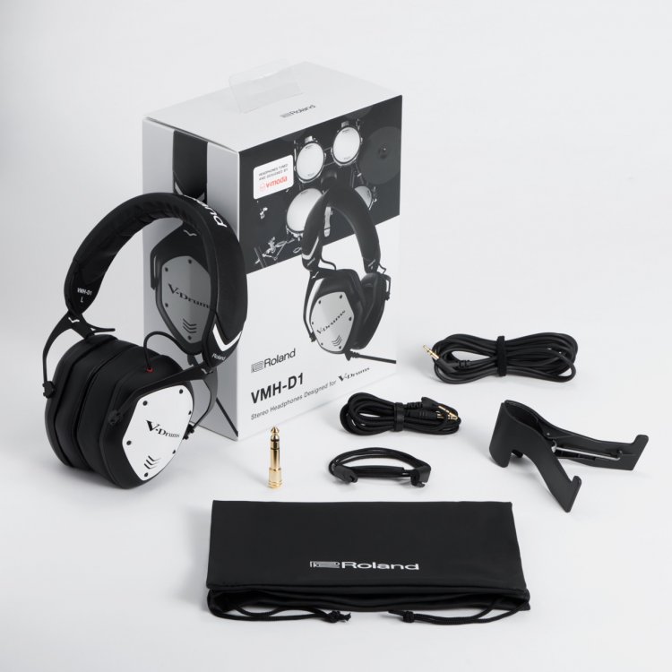 Los VMH-D1 vienen con un cable extralargo de 3 m que proporciona longitud suficiente para apartarlo del camino mientras tocas, junto con una sujeción para asegurar el cable detrás de la cabeza y en el suelo, detrás de la banqueta. También se incluye una percha, que puede fijarse a un soporte de batería o de platillos para guardar los auriculares cuando no se utilicen. Una prominente "R" roja en el auricular derecho facilita al músico ver la orientación correcta al ponerse los auriculares.