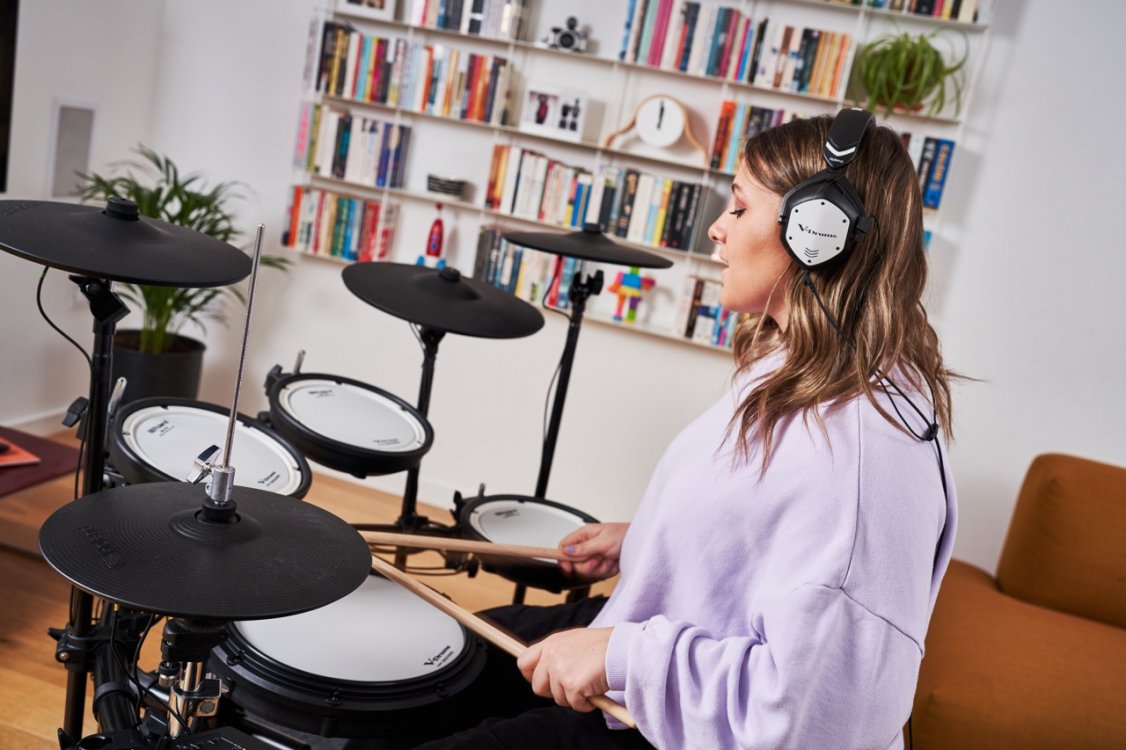 Roland presenta los auriculares VMH-D1 V-Drums, diseñados específicamente para una experiencia más inmersiva en la batería electrónica. Estos auriculares co-desarrollados por Roland y V-MODA ofrecen un sonido de calidad para aprovechar todo el potencial sónico de V-Drums o de cualquier otro e-kit. Cómodos de llevar y equipados con elegantes detalles prácticos.