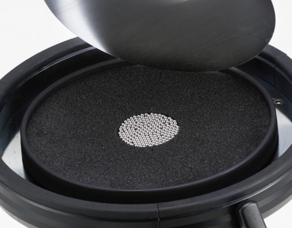 [Índice]Uno de los puntos fuertes del kit es sin duda el pad de caja, llamado AAD Snare Pad (AAD: Accuracy, Articulation, Dynamics). Este pad me sorprendió (y no fui al único) ya que podía percibir el bordón de la caja aún sin tenerlo. Y entonces, ¿qué produce el sonido de bordonera?. Lo que produce este tan ansiado sonido en un pad son unas pequeñas esferas de acero inoxidable que chocan contra una superficie de aluminio que se esconde debajo del parche de maya de doble capa sobre el que se golpea. Además el pad está albergado por un aro con el que se pueden practicar rimshots y side sticks a la perfección. Además tiene tornillos tensores para ajustar la tensión del parche.