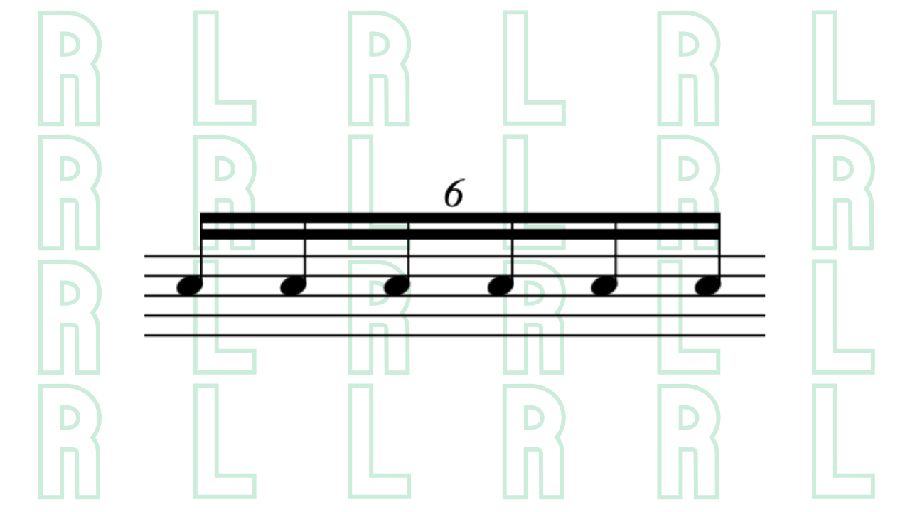 Cada sticking tiene su propio sonido que puede ser adecuado para situaciones musicales específicas. Si bien es importante trabajar en el control y uniformidad de los patrones intentando que todas las notas suenen a la misma dinámica, también es beneficioso destacar las propiedades únicas de cada sticking y sus acentos naturales para crear música. En mi opinión, la música debería ser el objetivo final en todo esto. Para ilustrar este punto, podemos tomar como ejemplo los seisillos y explorar cómo diferentes patrones pueden afectar el sonido resultante en la batería.